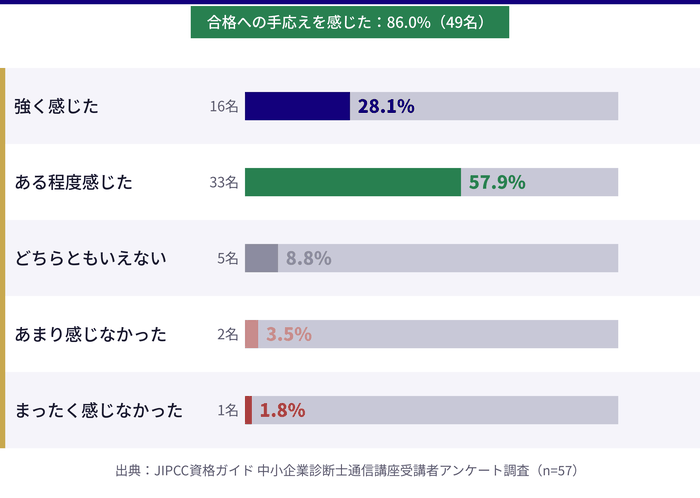 • 実際の受講者57名へのアンケート調査をもとにした満足度データ(総合満足度84.2%・コスパ満足度84.2%など)から、通信講座が合格に与える実際の効果と、後悔しない講座選びのための具体的なチェックポイントがわかります。