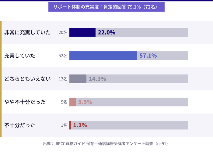 受講生の89.1%が学習経験のない初学者であることが示すように、保育の知識がゼロの状態から合格を目指せるカリキュラム設計が最大の強みです。