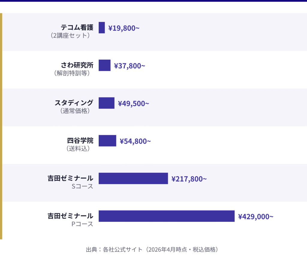 比較項目スタディング看護師国家試験講座四谷学院看護国試対策通信講座吉田ゼミナールテコム看護(TECOM)さわ研究所