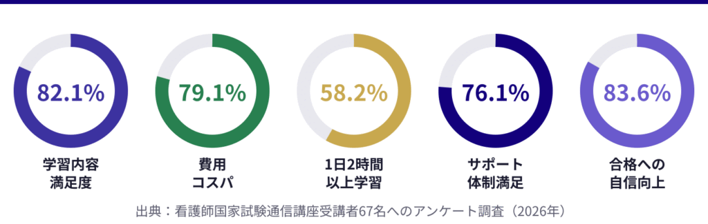 • 受講経験者67名へのアンケート調査結果をもとに、通信講座の学習内容・費用対効果・サポート体制・合格への自信向上の実態がリアルな数値でわかります