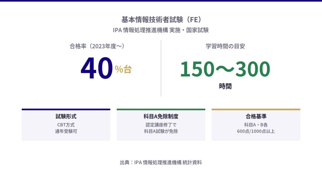 さらに、基本情報技術者試験の合格は弁理士試験・中小企業診断士試験の一部科目免除にも活用できるため、他資格とのシナジーも見逃せません。