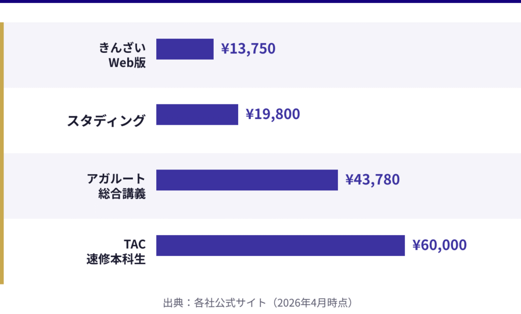 | 運営会社 | KIYOラーニング株式会社 | 株式会社アガルート | TAC株式会社 | 一般社団法人金融財政事情研究会 |