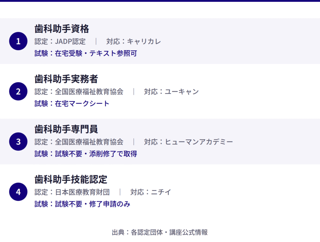 このように、歯科助手の民間資格は「きちんと学習すれば取れる資格」として設計されており、実務に直結した知識の習得を主目的としています。