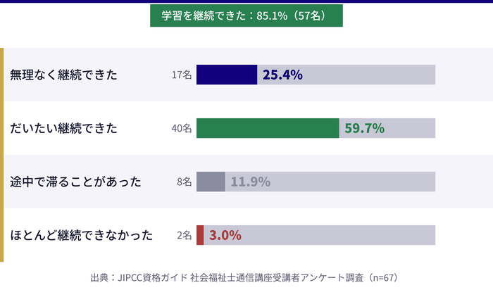 受講生の94.3%が仕事をしながら学んでいるという実績が、このサポート体制の充実ぶりを物語っています。