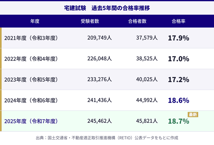 宅建(宅地建物取引士)試験は、毎年20万人以上が受験する国内最大規模の国家資格試験のひとつです。合格率が15〜18%台という数字を見ると、「難しそう」と感じる人もいるのではないでしょうか。