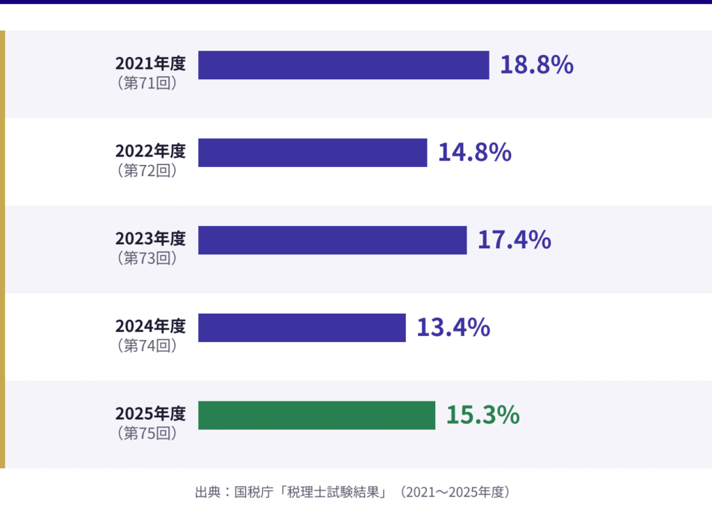 • 税理士試験の受験資格・科目構成・合格率の推移(2021〜2025年度)・2026年度の最新試験スケジュールなど、試験の全体像が理解できます