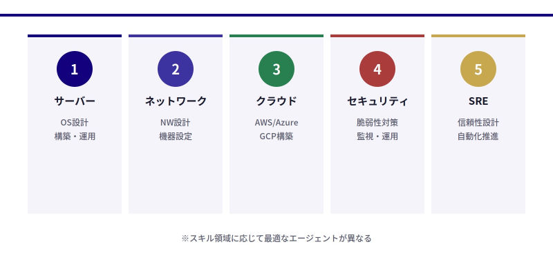 ただし、エージェントによってIT・インフラ系に強い専門性や保有求人数に差があるため、比較して選ぶことが大切です。