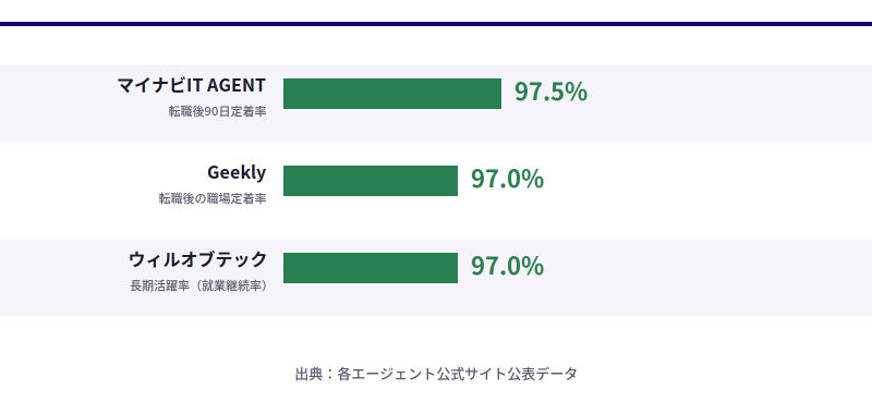 | Geekly(ギークリー) | 株式会社ギークリー | 無料 | 45,000件以上(非公開含む・2026年2月時点) | IT・Web・ゲーム特化。転職後定着率97%・内定まで平均28〜30日 | サーバー・ネットワーク・クラウド・セキュリティ全職種対応 | 全国(関東・関西中心) | オンライン・対面(平日20:30・土曜対応) | IT経験者・年収アップ・スピード転職希望者 |