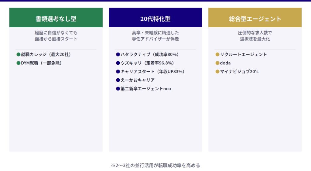 高卒での転職活動は、大卒者と異なる点があります。学歴不問・未経験歓迎の求人を効率的に見つけるためにも、転職エージェントをどう使いこなすかが鍵になります。