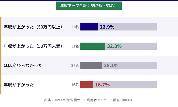また、転職によって年収は平均22.0万円増加したという結果も出ています。
