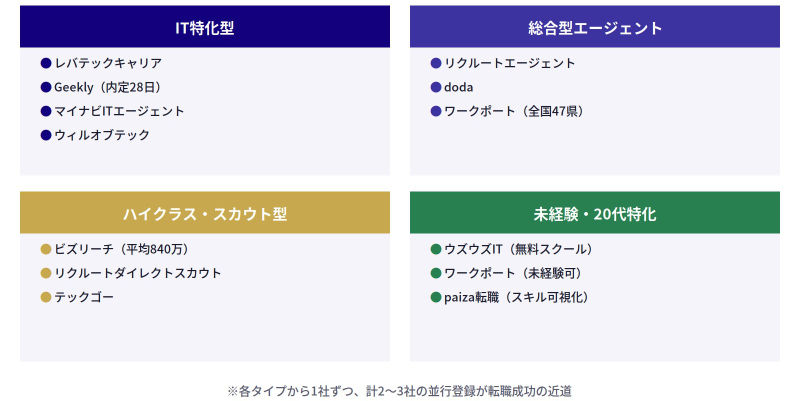 選択肢を広げるためにも、目的別に2〜3社を並行して活用するのが最も効果的な転職戦略です。