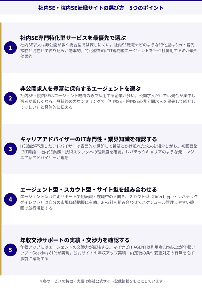 3. 社内SE・院内SE転職サイトの選び方|失敗しないための5つのポイント