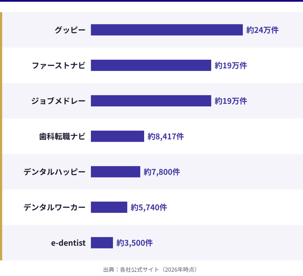 求人数の多さを重視するならグッピー・ジョブメドレー・ファーストナビ歯科衛生士が強みを持ちます。