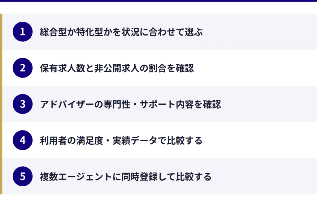 3. 転職エージェントの選び方|失敗しない5つのポイント