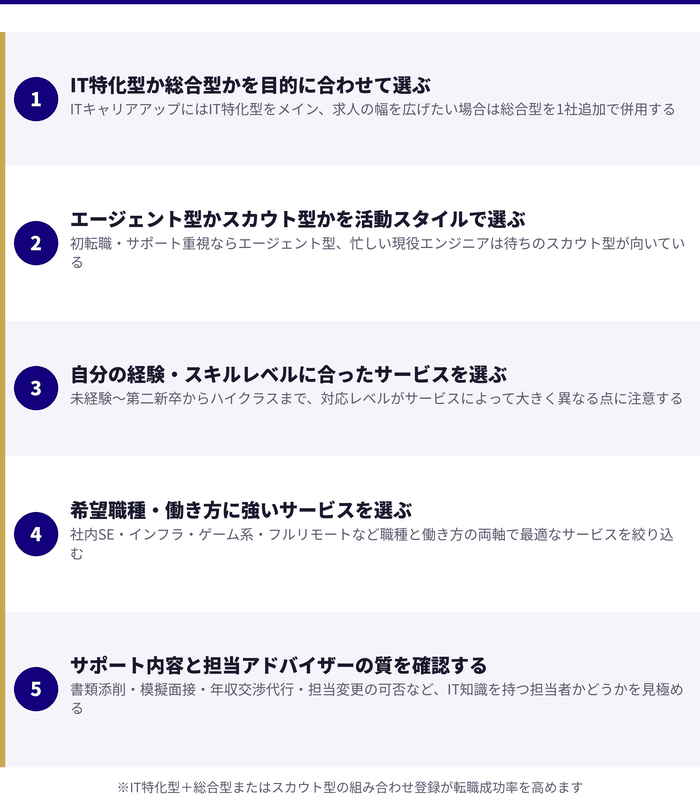 3. ITエンジニア転職サイトの選び方|失敗しない5つのポイント