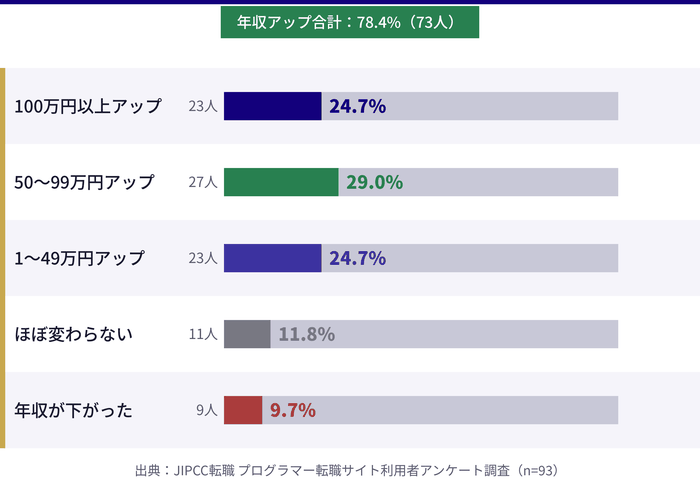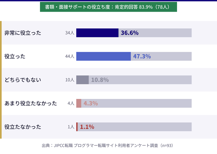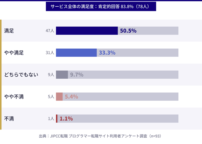 - 実際の利用者93人へのアンケートをもとにした満足度・転職活動期間・年収変化などのリアルなデータ