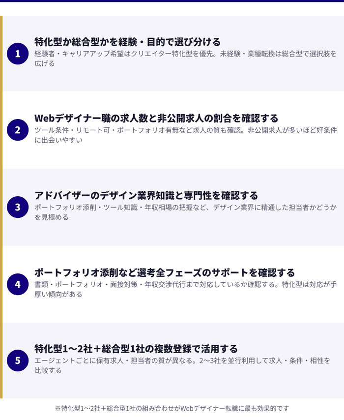 WEBデザイナーの転職には、クリエイター特化型と総合型を組み合わせた複数登録が効果的です。